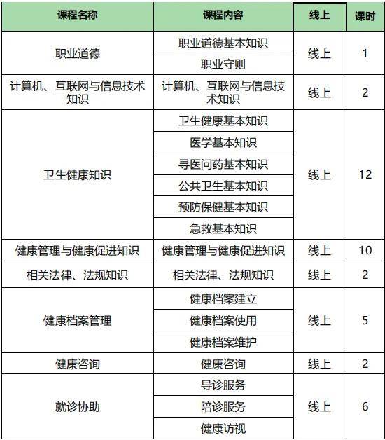 安康管理和安康促进的基本知识、心理精神健康的基本知识、营养食物卫生的基本知识、中医养生的基本知识、运动健康的基本知识、健康中国的基本知识;